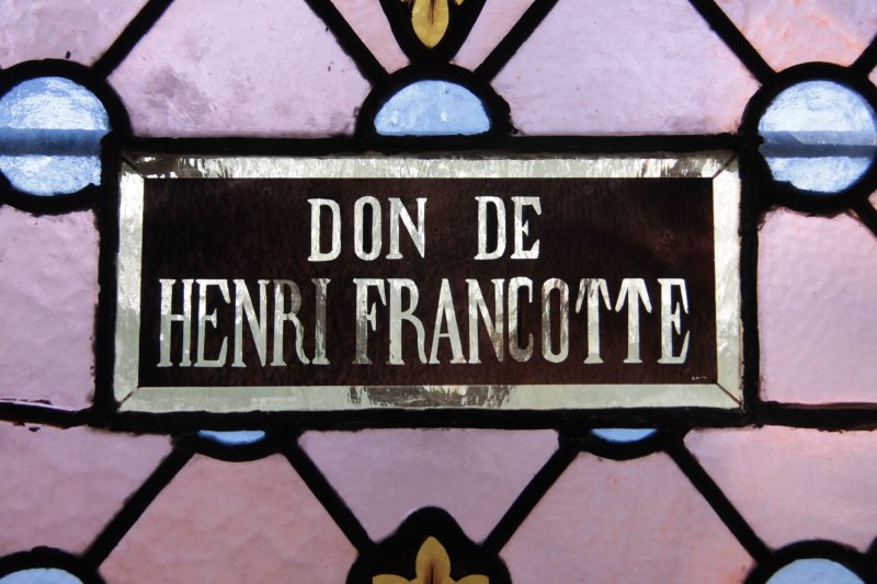 A l’occasion des journées du patrimoine, la fabrique d’église St Pancrace voulait mettre à l’honneur Henri Francotte, bourgmestre de Dalhem au début du 20e siècle. Dans le vitrail dédié à St Henri, le cartouche original avait été remplacé par une pièce de qualité médiocre comportant une faute dans le nom. Sous l’impulsion de son petit fils, le cartouche a été restitué avec l’orthographe correcte. D’autres inscriptions ont permis de restituer la police de caractère. Cette intervention m’a permis de retrouver l’église de mon village et d’apporter ma contribution à sa valorisation à l’instar de mon grand-père, ancien président de la fabrique d’église.