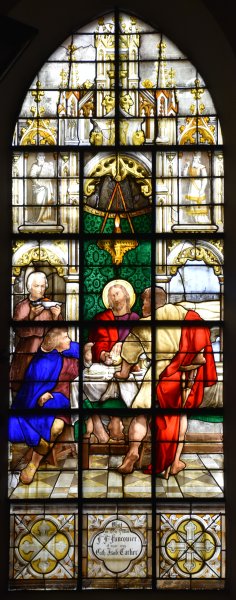 Les 6 verrières historiées, réalisées en 1863 par l’atelier bruxellois Vanderpoorten, prennent place dans la chapelle Renaissance attenante à la collégiale romane Saint-Vincent, classée patrimoine exceptionnel. Les vitraux présentaient de nombreux dégâts dus principalement à la dégradation des armatures et à la grêle. Ceci a motivé la décision de remplacer les armatures et d’installer des verrières de protection. Celles-ci ont permis de limiter les interventions sur les vitraux et de conserver leur authenticité au maximum. Les pièces, même fortement endommagées, ont été stabilisées par collage. Les lacunes, dont certaines de formes complexes, ont été complétées au plus proche de l’existant. Les peintures effacées à des niveaux variables ont été conservées en l’état. En gardant à l’esprit la fragilité des vitraux, le nettoyage de la face intérieure a permis d’améliorer la balance lumineuse. Le traitement des dépôts de pollution sur la face extérieure a été limité pour éviter tous risques de dégâts supplémentaires. Les travaux ont fait l’objet d’une documentation exhaustive qui servira de repères pour les générations futures. La bonne exécution de ce projet échelonné sur deux ans a tenu à 3 ingrédients : premièrement, l’expertise des restaurateurs diplômés impliqués dans l’étude ou les travaux, deuxièmement, la concertation entre l’atelier, l’entreprise générale et la direction de chantier, troisièmement le sérieux et l’enthousiasme de mes collaborateurs/collaboratrices. Que tous ici soient remerciés en leurs titres et qualités.