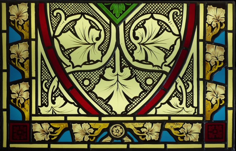 Les vitraux provenant d’une armoire disparue étaient réemployés comme brise-vue. Compositions géométriques, les vitraux intégrés au mobilier sont souvent d’une belle facture. Les verres originaux étaient conservés. En revanche, le plomb, plus altéré, devait être remplacé. Les panneaux étaient sommairement maintenus par des clous. En collaboration avec François Petgen, menuisier ébéniste, nous avons modifié les parcloses pour intégrer les vitraux au châssis existant. «Les vitraux font à présent partie de la maison » nous a confié le propriétaire.