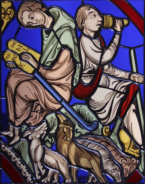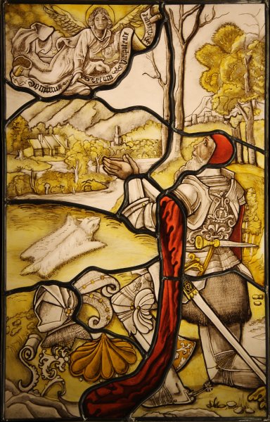 La deuxième semaine était consacrée à l’utilisation du jaune d’argent, peinture de cémentation qui colore le verre d’une teinte jaune à jaune orangé. En faisant un bond de trois siècles, je m'initiais au style de la Renaissance, caractérisé par des traits plus fins et un modelé qui donne du volume au sujet. La peinture sur verre est une expression artistique proche du dessin. Il faut apprendre à regarder pour savoir dessiner.